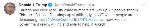 Президент страны Дональд Трамп в Twitter отреагировал на ситуацию. Он написал, что "федеральное правительство готово, готово и способно помочь, если его попросят".